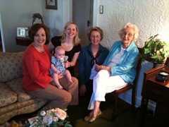 On Saturday, Moma, Daddy, HG, and I went down to Jackson for a quick day trip to check on GG. We had a great visit with Lary and Aunt Glo too. Moma captured a sweet moment with Google/Granddaddy/TBD and HG out on GG’s back balcony. Saturday was such a beautiful day! We stopped in at Mistletoe- big mistake. They are a stroller-free shopping place, and we were none to pleased to learn this as we walked in the door after buying tickets. We all took turns entertaining HG, and she did pretty well but of course did not take a nap. She was exhausted by the end of the day and, luckily, slept all the way home.