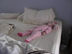 Funny story: While driving home last Thursday after picking up the baby girl, a pink and white sock flew over my shoulder and landed in my lap! She obviously can’t stand to keep her socks on her feet. Little Miss Assertive!