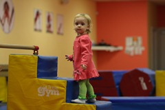 The kids were supposed to follow the trail of dots from one end of the bouncy runway to the other, but HG just wanted to play with the dots.