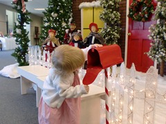 Sunday morning we went to Central Church to see Baby Isaiah be dedicated. Luckily, the ceremony was immediately at the beginning of the ceremony, so we were able to get in and out of the sanctuary. I thought for sure Helen Grace would be running wild through the aisles. As we took pictures with Billy, Sarah, and the rest of the family, HG was greatly entertained by all the pretty Christmas “tees” and decorations. We met everyone for lunch at McAlister’s afterward and had a fun time visiting with some old friends.