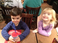 The Mullins came back in town this weekend, and Helen Grace was soooo excited to see 'my friend, Thomas.’ She would say that phrase over and over. They played together at Teddy and Nini’s house on Friday night and then went on a dinner date to Zaxby’s. Thomas also came over to our house Saturday night to watch the Rebels lose (again). The kiddos had a blast playing together. We only wish they lived closer!