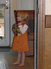 Quite the fashionista….the couch’s armcover makes a great shawl.