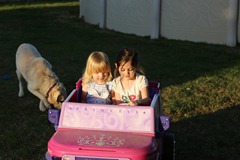On Saturday, we were planning on going to an Easter egg hunt at a friend’s house that started at 2:00. I put Helen Grace down for a ‘cat nap’ at 12:30, and she was so excited about just sleeping for an hour and then hunting eggs. But when I woke her up, my normally sweet baby girl was nowhere to be seen. Instead, a crazy animal awoke, clawing and screaming for sleep, so I let it go back to bed. Sure enough, she woke up just as the hunt was ending and was sad to have missed it and her friends. Her daddy and I came up with the next best thing…a private egg hunt at Grandma’s! We worked up such an appetite that we headed to an early dinner at Taco Bell and dessert at Gracie Bleu. We ran by the Anglins’ house afterward, and Helen Grace and Courtlyn had some backyard fun.
