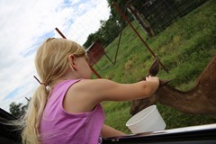 Well, the ostrich welcoming crew was in full force, and they preyed on the naïve newbies. Man, they were tough and persistent! We quickly learned to roll the windows up when we saw ostriches, but soon we were awestruck by all the other animals that came to the window for food. The kids went wild, and unfortunately, we totally trashed Brandy’s van. After we made two rounds of the drive-thru part, we headed to the petting zoo area and dove into our picnic lunch. A goat hopped up on the table to look for any stray food, and then the girls chased him and his siblings around the goat pin.