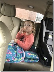 One Saturday morning that HG had a soccer game, it was raining pretty steadily. Cressey and I spent some time on the playground and then retreated to the car with a movie and snacks.