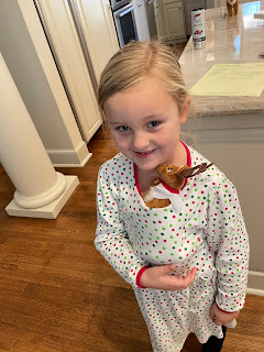 Cressey has an elf in her classroom, and Ms. Amy was showing them some treats he brought one morning. Love seeing Cress up on those tippy toes.