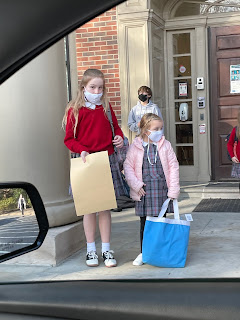 This school year, they've asked parents to pick up each child at their own school as to not contaminate buildings and kiddos. But in January, we are now allowed to pick up in ONE PLACE! I was so emotional seeing both of my girls on the SAA lower school front porch!!